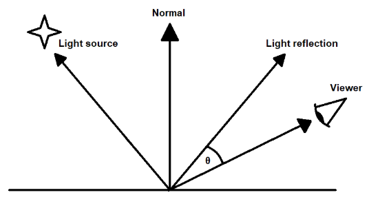 - 정반사각에서 쳐다볼 수록 세기가 강하고, 정반사각에서 벗어날 수록 세기가 약하다.