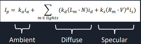 수식에서는 물체의 기본 컬러에 해당하는 K를 Ka, Kd, Ks로 ambient, diffuse, specular 각각 따로 두지만,