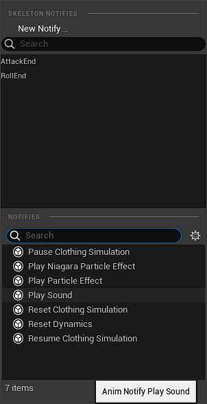 메타사운드와 사운드 큐, 어느 쪽이든 에셋을 만들었다면 애니메이션의 Notify에 추가할 수 있다.