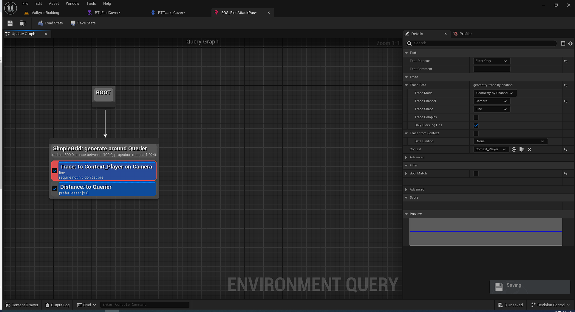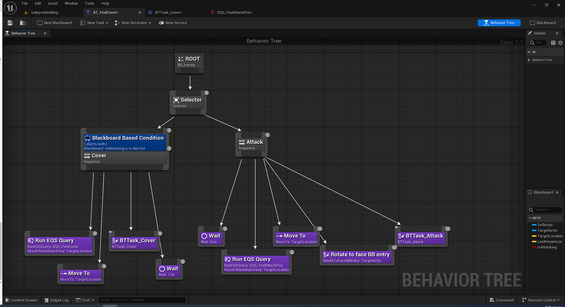 이렇게 엄폐, 공격을 담당하는 EQS가 모두 만들어졌으니, 비헤이비어 트리에서 이것을 사용해볼 시간이다.