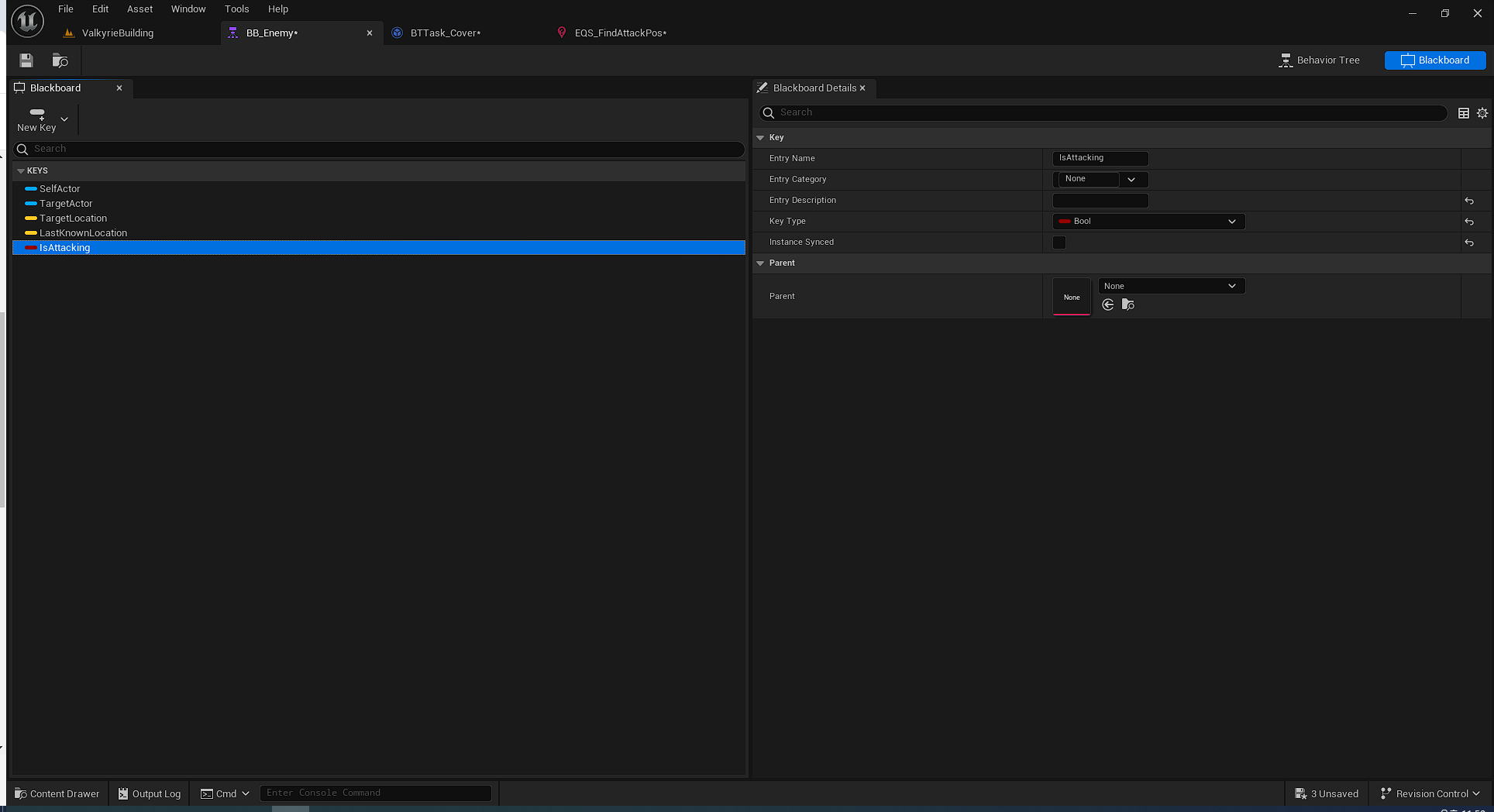 그전에, 먼저 블랙보드에서 새로운 키 IsAttacking을 추가해주었다.
