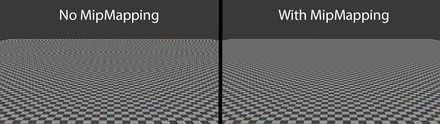 원래 방식대로라면 점점 한 픽셀 안에 여러 텍셀이 들어가면서 오브젝트의 표면이 지저분하게 보였겠지만, 밉맵을 사용한다면 그냥 미리 가지고있던 텍스쳐 중 작은 텍스쳐로 바꿔주기만 하면 된다.
